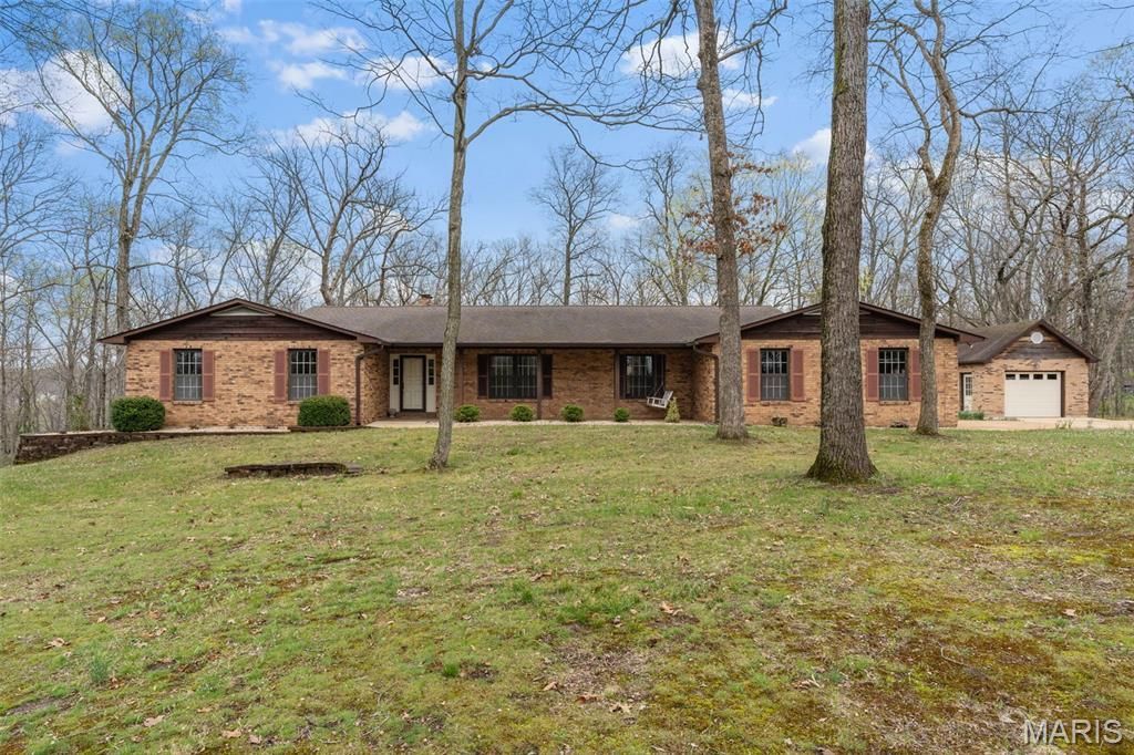 Original Owner! This solid, well maintained 1978-built ranch home has vintage charm and is nestled on 3.15+/- scenic acres, full of charm, space and timeless character. A large entry welcomes you into a cozy great room featuring a classic wood-burning fireplace, wood ceiling, and highlighting with exposed beam accents. The kitchen offers a functional layout with stainless steel appliances, backsplash, breakfast bar, and a bright breakfast nook with bay windows. A separate dining room and a sunken living room. The primary bedroom suite offers a walk-in tile shower, 2 closets, and a high vanity sink, also a private access to a large composite deck, creating a relaxing retreat. The home includes 2 additional bedrooms, a full hallway bathroom and a convenient main floor laundry room adjoining to a half bath. The beautiful wood floors adds warmth throughout some of the main level. The lower level features a partially finished basement with a spacious rec/family room, a second wood-burning fireplace, and walk-out access to a sizable patio, idea for gatherings or quiet evenings. Outdoor space truly shines with a large composite deck across the back of the home, a screened-in porch, and a peaceful, park-like setting. the property includes an oversized two-car attached garage and 1 car detached garage, offering plenty of room for vehicles, hobbies or storage. This property is being Sold in Current Condition Sold As Is Seller to do no repairs. Restrictions, HOA $300 a year, Special Assessment $300 a year. Easy to show, call today to set up your appointment.