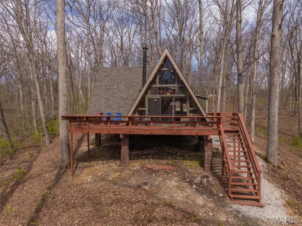 Set on more than three wooded acres, this quintessential A-frame offers a peaceful and serene setting. The winding gravel driveway leads you in and creates a true sense of arrival. Fresh gravel accents the well-maintained approach. Mature oak forest literally picture frames the lake. The exterior has been updated with a newer roof, complete painting, and stained deck. Inside, the home blends the familiar A-frame style with meaningful updates. New flooring runs through the main living areas. The kitchen has been remodeled with a clean, functional layout. The main living room features the signature wall of windows that brings in natural light and frames the wooded views. A wood-burning stove adds comfort during the cooler months. The main floor includes a vaulted primary bedroom and an updated bath. Upstairs, the loft provides additional sleeping space or a workspace. High-speed internet is available, making it easy to stay connected when needed. Major systems have been addressed with a newer HVAC system and septic tank. The property includes 52 feet of shoreline on Seebrook Lake. The wooded setting offers privacy, with the option to shape the shoreline to fit your vision over time.Offered fully furnished and move-in ready, this non-rentable property is set up for immediate use. It is a straightforward, well-maintained retreat in a strong Innsbrook location.