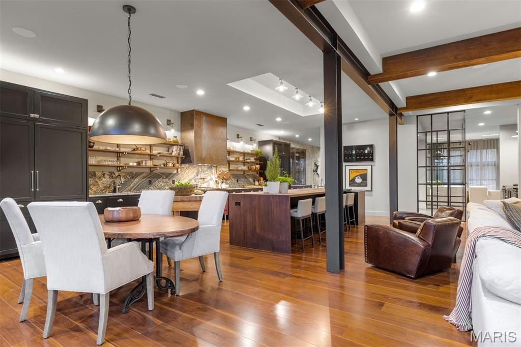 Discover this iconic mixed-use opportunity in the heart of the Central West End-where refined residential living meets limitless commercial potential. Spanning four levels and accessible by both elevator and staircase, this architecturally striking property offers a seamless blend of sophistication and versatility.A dramatic entry foyer introduces a gallery, boutique or restaurant space anchored by a private courtyard, complemented by a fitness studio and attached garage. Beginning on the second floor, the penthouse residence is truly magazine-worthy, featuring an expansive great room, a commercial chef's kitchen, breakfast room, wine cellar, bar, formal dining, and two bedrooms-including a serene primary suite with spa-inspired bath. Outdoor living is elevated with a private lap pool/spa and curated lounge spaces. The third level offers ultimate flexibility with a guest suite, office, or entertainment venue-complete with kitchenette and overhead door access to the outdoor pergola lounge, serving areas and private patios.The finished lower level adds depth and character with stone walls, a spacious recreation room, kitchenette, two additional bedroom suites, a spa room, laundry, and abundant storage.Equally suited as a private luxury residence, boutique hospitality concept, private club, or creative commercial venture-this is a rare Central West End offering designed for those who live, host, and create at the highest level.